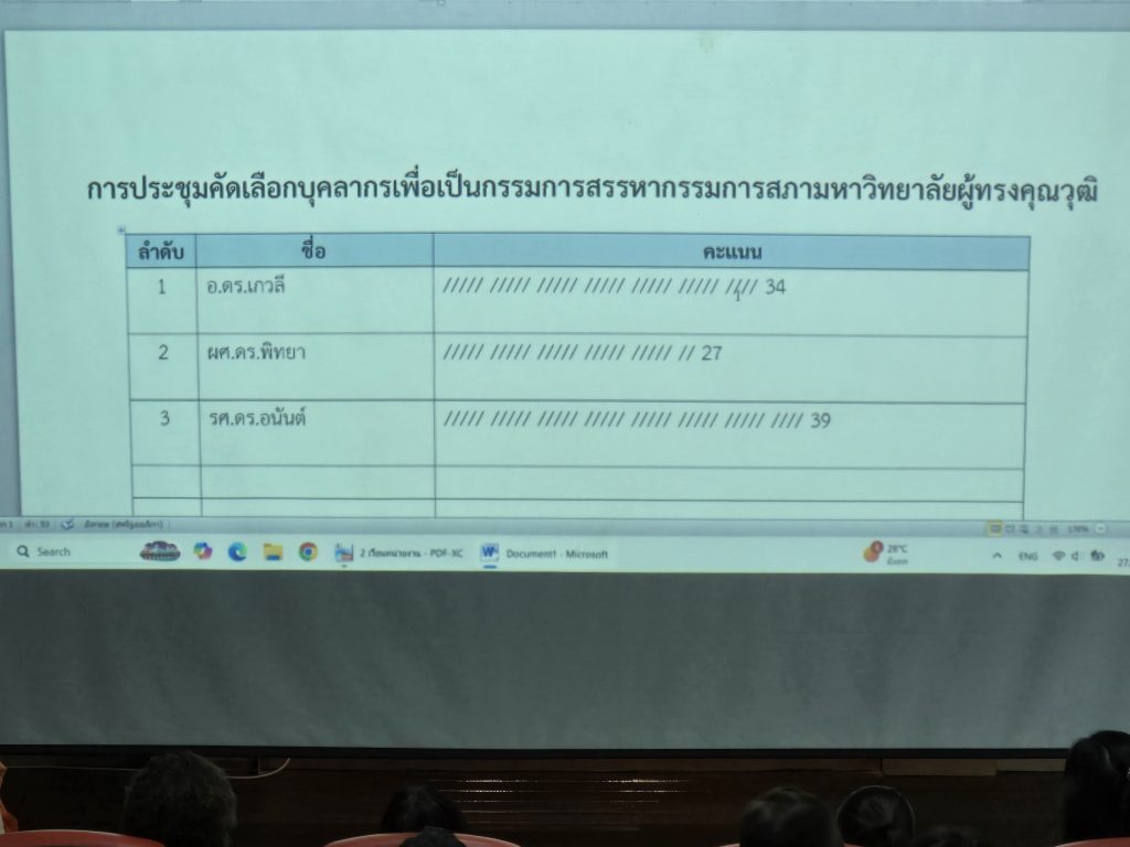 โดยมีบุคลากรเข้าร่วมการคัดเลือกทั้งสิ้น ๑๐๐ คน ผลการลงคะแนนคัดเลือกปรากฏดังนี้: