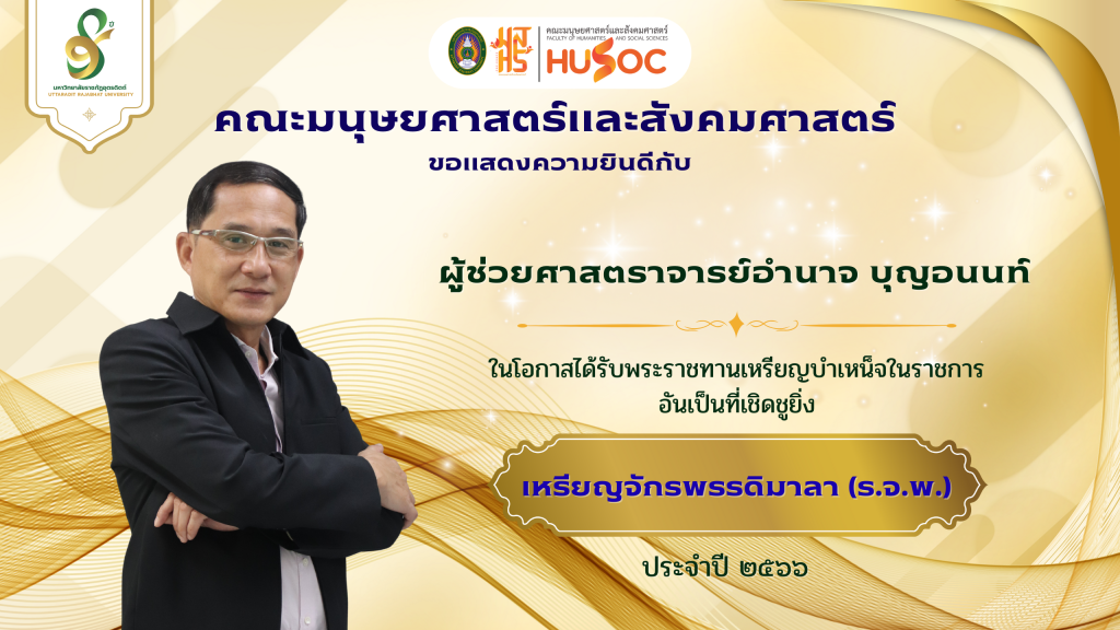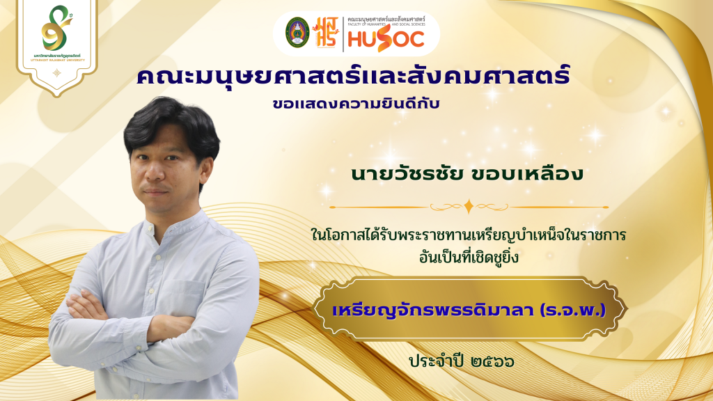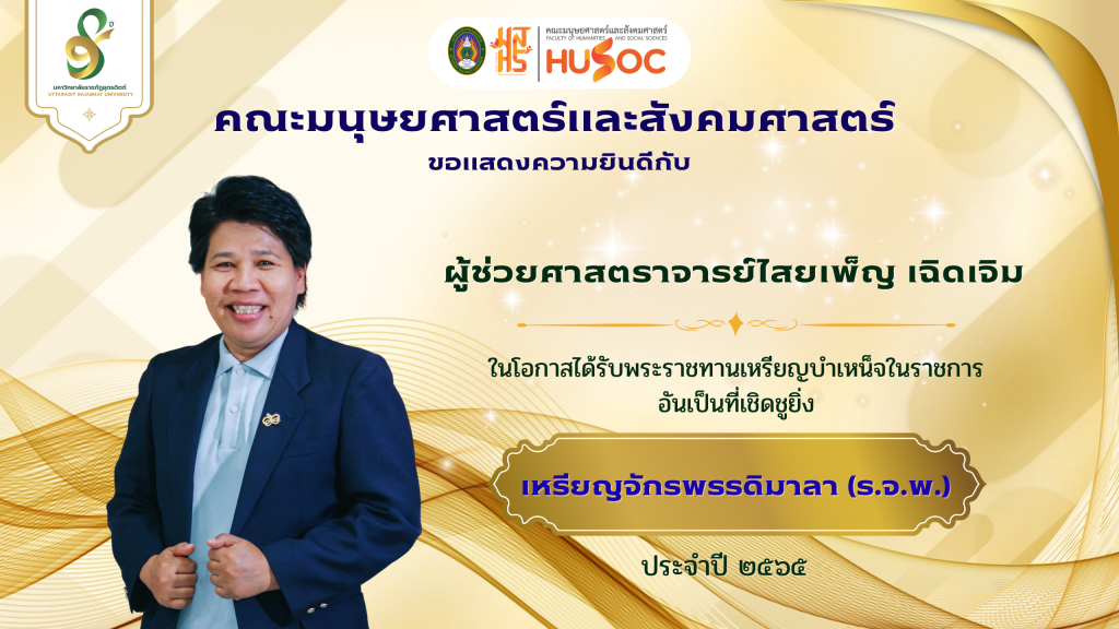 คณะมนุษยศาสตร์และสังคมศาสตร์ ขอแสดงความยินดีกับ คณาจารย์ ในโอกาสได้รับพระราชทานในโอกาสได้รับพระราชทานเหรียญบำเหน็จในราชการอันเป็นที่เชิดชูยิ่ง “เหรียญจักรพรรดิมาลา (ร.จ.พ.)” และใบประกาศศนียาบัตรกำกับเครื่องราชอิสริยาภรณ์ ปี 2565 – 2566