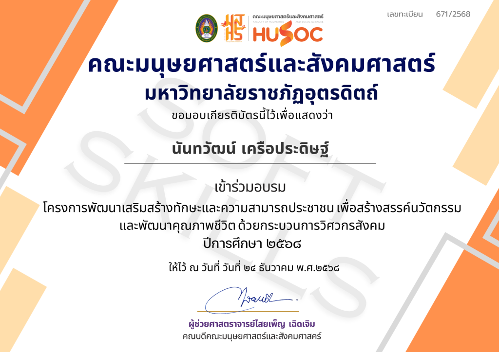 โครงการพัฒนาเสริมสร้างทักษะและความสามารถประชาชน เพื่อสร้างสรรค์นวัตกรรมและพัฒนาคุณภาพชีวิต ด้วยกระบวนการวิศวกรสังคม คณะมนุษยศาสตร์และสังคมศาสตร์ ปีการศึกษา 2568
